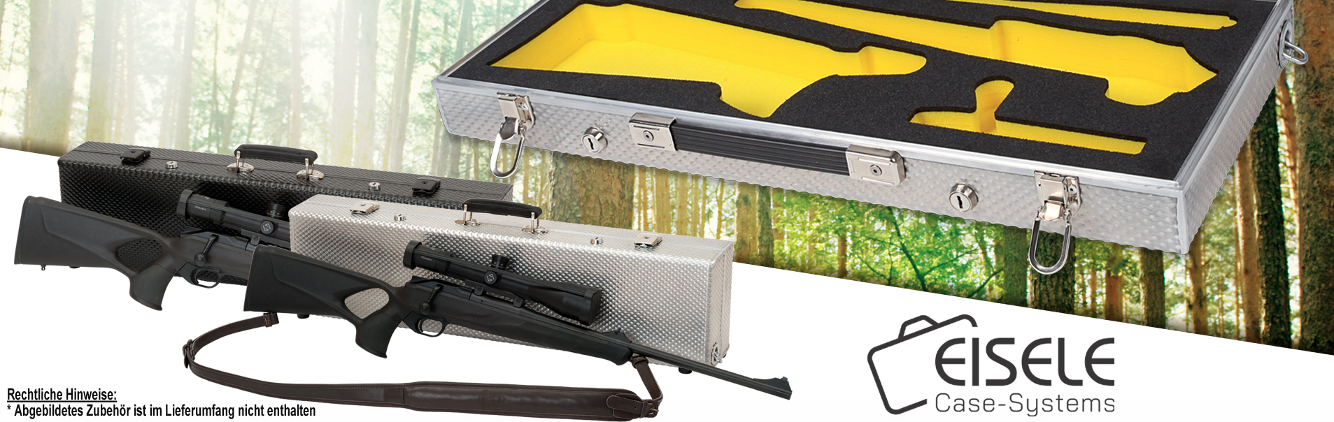 Auch im Inneren der Koffersysteme werden Ihre Gewehre, Pistolen, Messer, auf Wunsch die komplette Jagdausrüstung nicht vernachlässigt. Ein durchdachtes, mehrlagiges Schaumstoffsystem sorgt für idealen Schutz währen des Transportes und der Lagerung. Ein Verrutschen wird vermieden, Schläge und Stöße abgefangen. Sonderanfertigungen auf Kundenwunsch können bei EISELE, dank eigener Fertigung auf CNC-Fräsen und Wasserstrahlschneidern, kurzfristig realisiert werden. Somit kann Ihr Waffenkoffer speziell auf Ihre Bedürfnisse und Anforderungen abgestimmt werden
