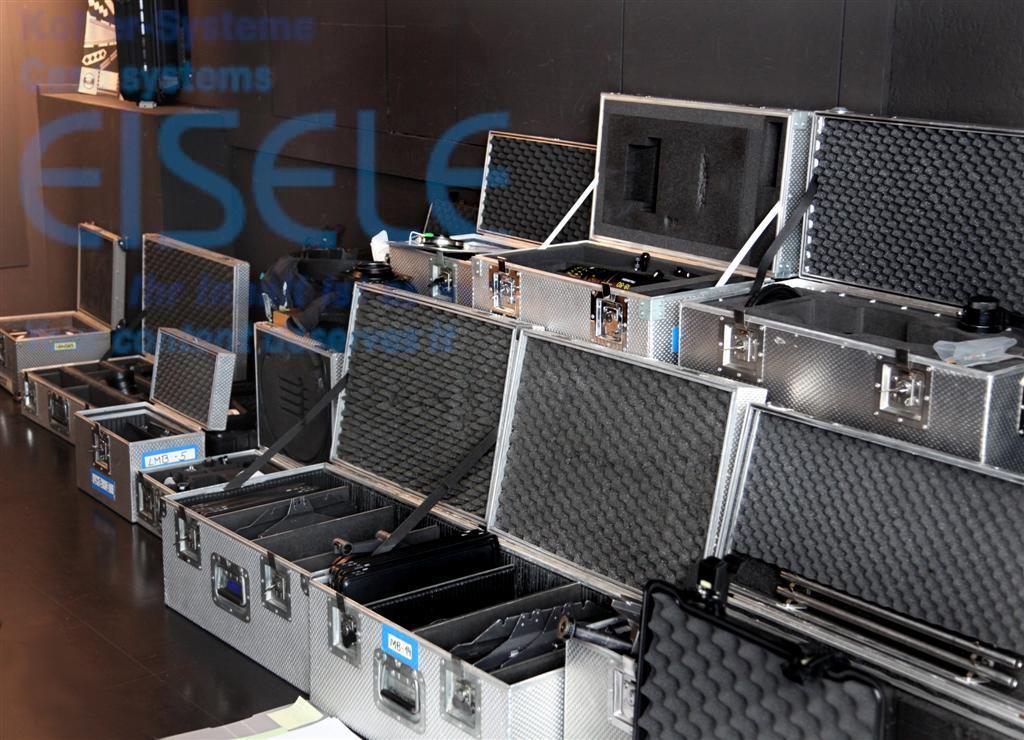Auch im Inneren der Koffersysteme werden Ihre Kameras, Objektive, Monitore, auf Wunsch auch Sondereinbauten nicht vernachlässigt. Durchdachte Schaumstoffsysteme und/oder Schwingungsdämpfer sorgen für idealen Schutz währen des Transportes und der Lagerung. Ein Verrutschen wird vermieden, Schläge und Stöße abgefangen. Trotz der bereits großen Vielfalt an vorhandenen Standardkoffern und Schaumeinlagen können wir, dank eigener Konstruktion und Fertigung, kurzfristig auf Ihre Bedürfnisse und Anforderungen eingehen.