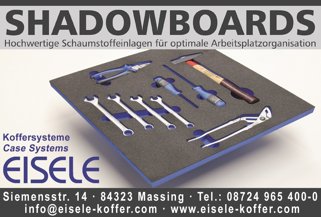 Mit unseren Shadowboards gestalten Sie Ihre Einlagen aus Schaumstoffen fuer Werkzeugschraenke, Werkzeugwagen und Ihren Arbeitsplatz. Dabei sind Sie nicht an Standard-Werkzeugvorlagen gebunden sondern koennen auch Sonderwerkzeuge integrieren.