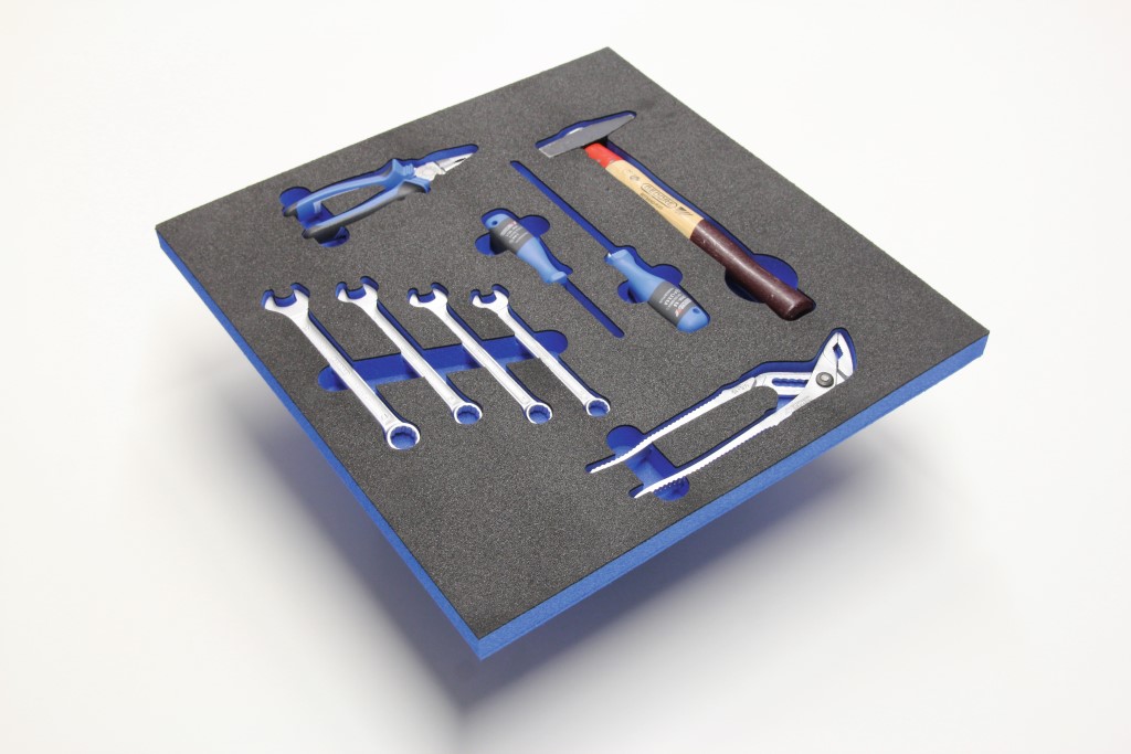Hochwertige Schaumstoffeinlagen fuer optimale Arbeitsplatzorganisation